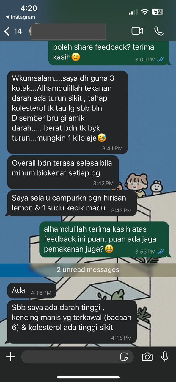 Kesan Dialami Pengguna Biokenaf Seawal 28 Hari Melalui Temubual Whatsapp
